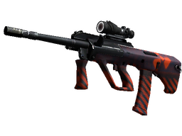 Мощная и точная винтовка с оптическим прицелом AUG компенсирует свою долгую перезарядку низким разбросом пуль и высокой скорострельностью. Рисунок в виде знака радиологической опасности нанесен баллончиком.